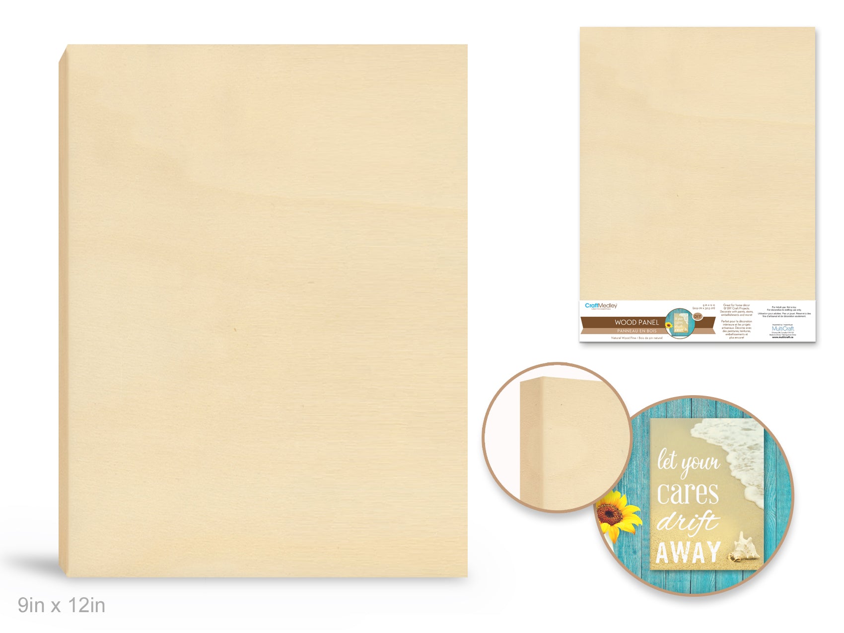 Wood Crafts: DIY Art Panel 9"x11.6" Natural, 0.7" Depth