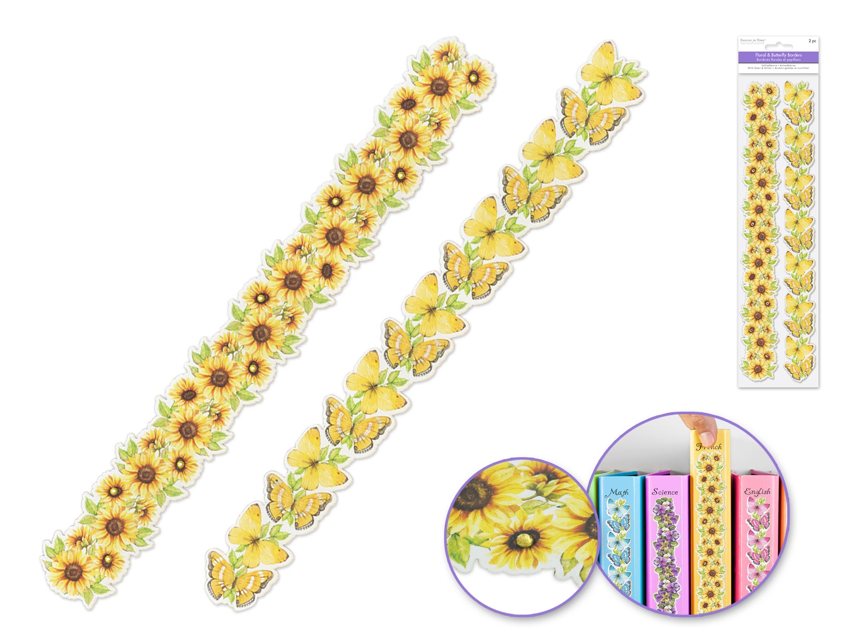 Yellow sunflower floral and butterfly borders