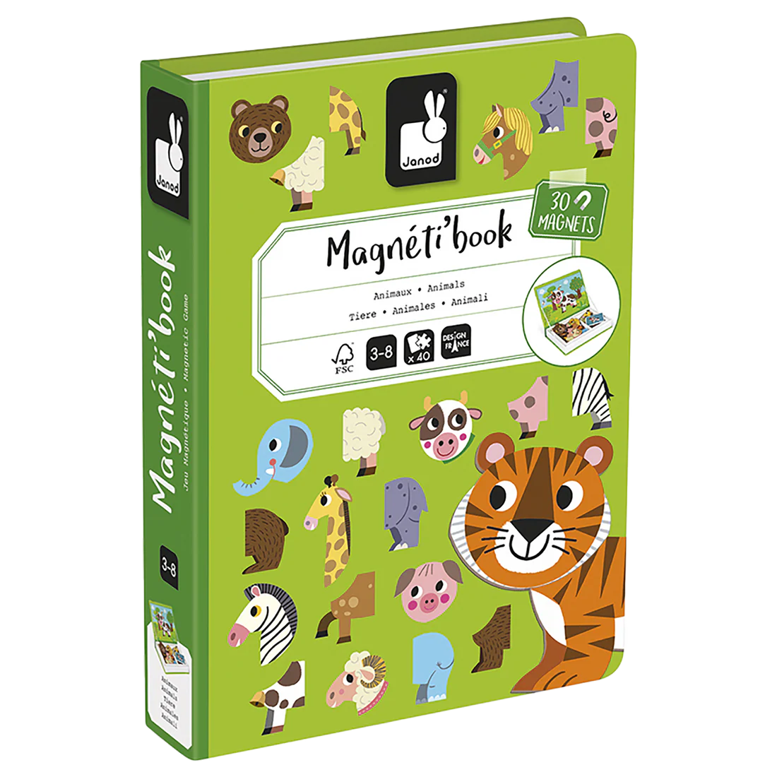 Un zoo entier dans une petite boîte ! Le Magnéti'book animaux contient 30 magnets pour donner vie à beaucoup d'animaux. Super pratique grâce son format livre : il suffit à votre enfant de l'ouvrir pour trouver les aimants ainsi que les 10 cartes modèles et la face magnétique sur laquelle assembler les magnets. Le but du jeu est simple, recomposer sur la scène magnétique l'animal indiqué sur la carte modèle ou laisser parler son imagination pour créer des animaux loufoques et drôles car chaque pièce est compatible avec les autres ! Parmi les animaux à recréer il y a le cheval, le rhinocéros, la girafe, le zèbre, l'ours, le mouton... Grâce à sa boîte pratique, vous pourrez collectionner tous les magnéti'book, les ranger dans une bibliothèque et les emporter partout pour occuper vos enfants dès 3 ans au restaurant ou sur le trajet des vacances !