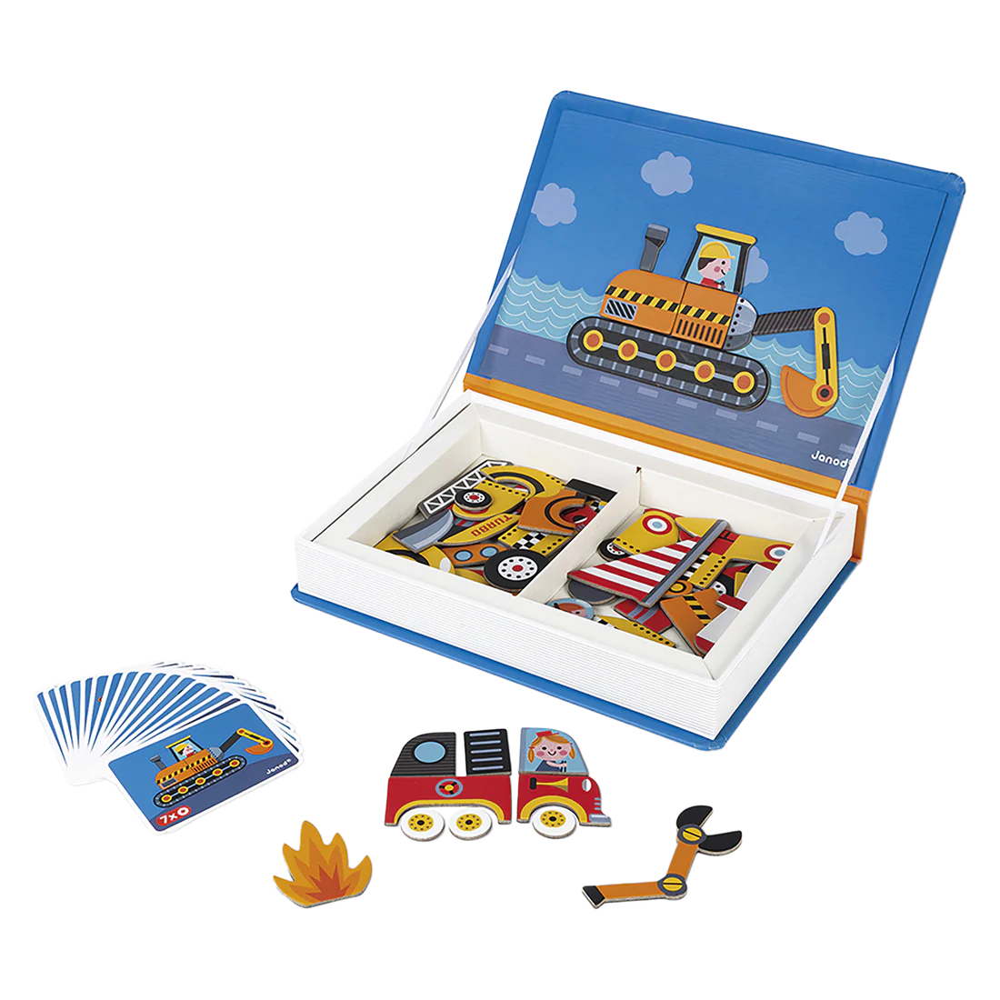 Un coffret qui renferme un trésor ! Le Magnéti'book s'offre une version bolides pour les passionnés d'engins en tout genre dès 3 ans ! Les enfants vont adorer créer et inventer des véhicules grâce aux 50 magnets fournis ! Ils auront le choix entre reproduire les modèles des véhicules des 18 cartes modèles (camion de pompier, sous-marin, tank, bateau, avion...) ou puiser au fond de leur imagination pour créer les véhicules du futur ! Seul ou à plusieurs, le Magnéti'book bolides permet aux enfants de manipuler des pièces et de les assembler pour créer tout ce qui leur passe par la tête ! Facile à transporter grâce à son format livre, ce Magnéti'book occupera aussi vos enfants lors d'un trajet en voiture ou pendant les repas de famille. Les Magnéti'Book sont des jeux éducatifs malins qui se transportent et se rangent facilement !