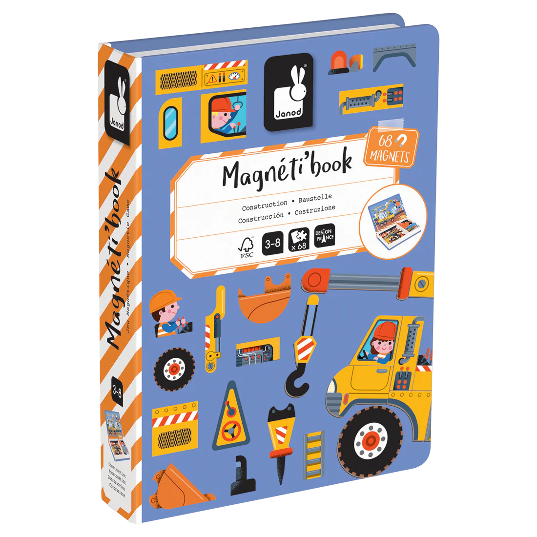 La ville s’agrandit : il est temps de construire de nouveaux bâtiments, et les travailleurs sur le chantier ne sont pas contre un peu d’aide ! Ce jeu éducatif magnétique fera la joie des fans d’engins dès 3 ans. Stimuler l’imagination est une étape clé dans la croissance de l’enfant : à l’aide de ce Magnéti’book votre petit sera enclin à imaginer d’innombrables histoires et véhicules. Il pourra, soit se référer aux modèles et aux illustrations colorées, soit imaginer ses propres histoires de A à Z en mixant les aimants. Ce jeu magnétique se compose de 50 pièces aimantées ainsi que de 18 modèles aux décors urbains.