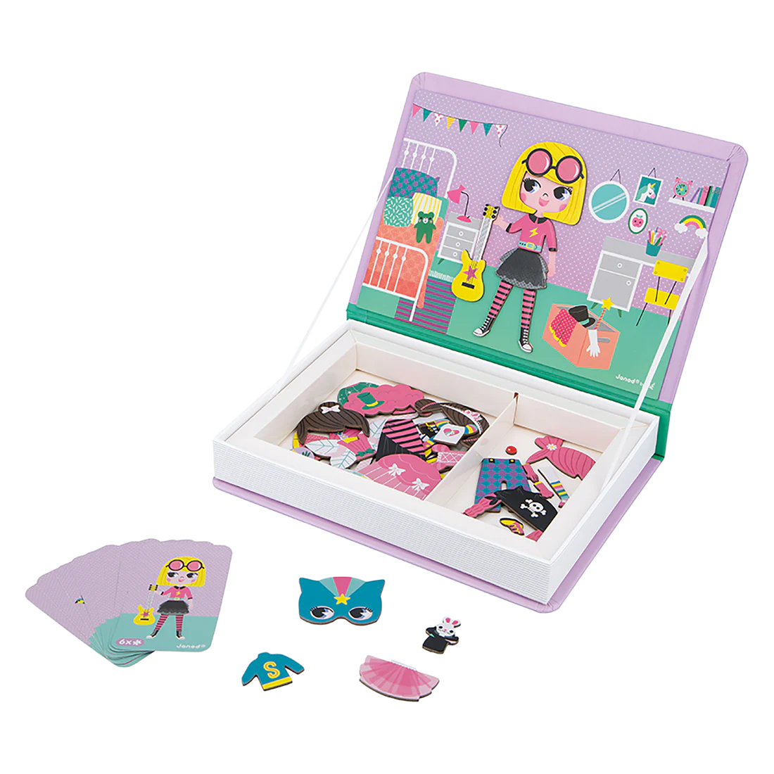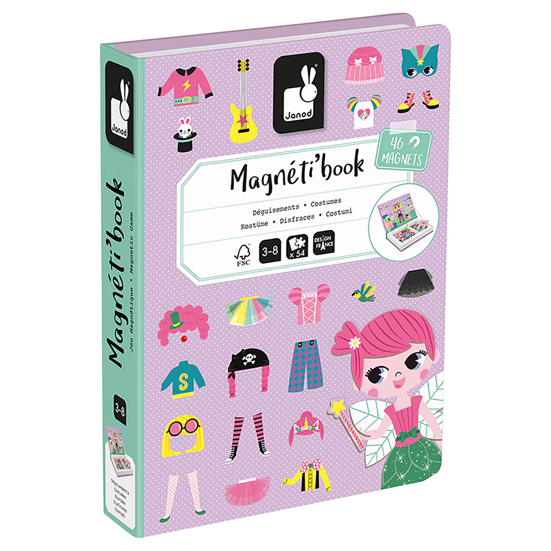Les Magnéti'Book sont des jeux éducatifs malins qui se transportent et se rangent facilement ! Les enfants adorent créer des personnages et s'inventer des histoires. Avec les Magnéti'Book ça devient facile ! Les magnéti'book sont parfaits pour les longs trajets en voitures ou les attentes qui se prolongent. Avec ce Magnéti'Book Déguisements de Filles, l'enfant va pouvoir recomposer de belles tenues grâce à des magnets illustrés en s'aidant des cartes modèles. Ce jeu éducatif magnétique en carton se compose de 46 magnets et de 8 cartes.